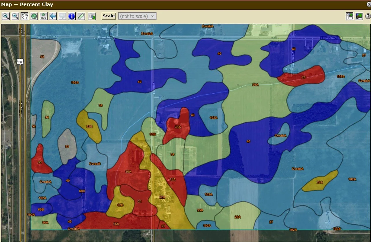 Map Showing the Percent Clay Content on Farmland East of Shepherd, Michigan.